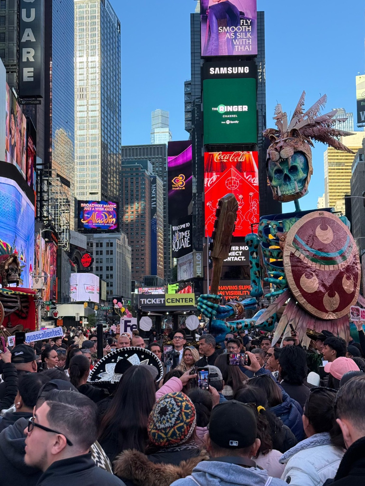 En un hecho histórico, la presidenta de Atlixco, Ariadna Ayala, encabezó la inauguración de las Catrinas Monumentales de Atlixco, El Guerrero Águila y El Guerrero Jaguar, en Times Square, llevando el arte, la cultura y la identidad del pueblo Atlixquenses a nuestros hermanos migrantes.